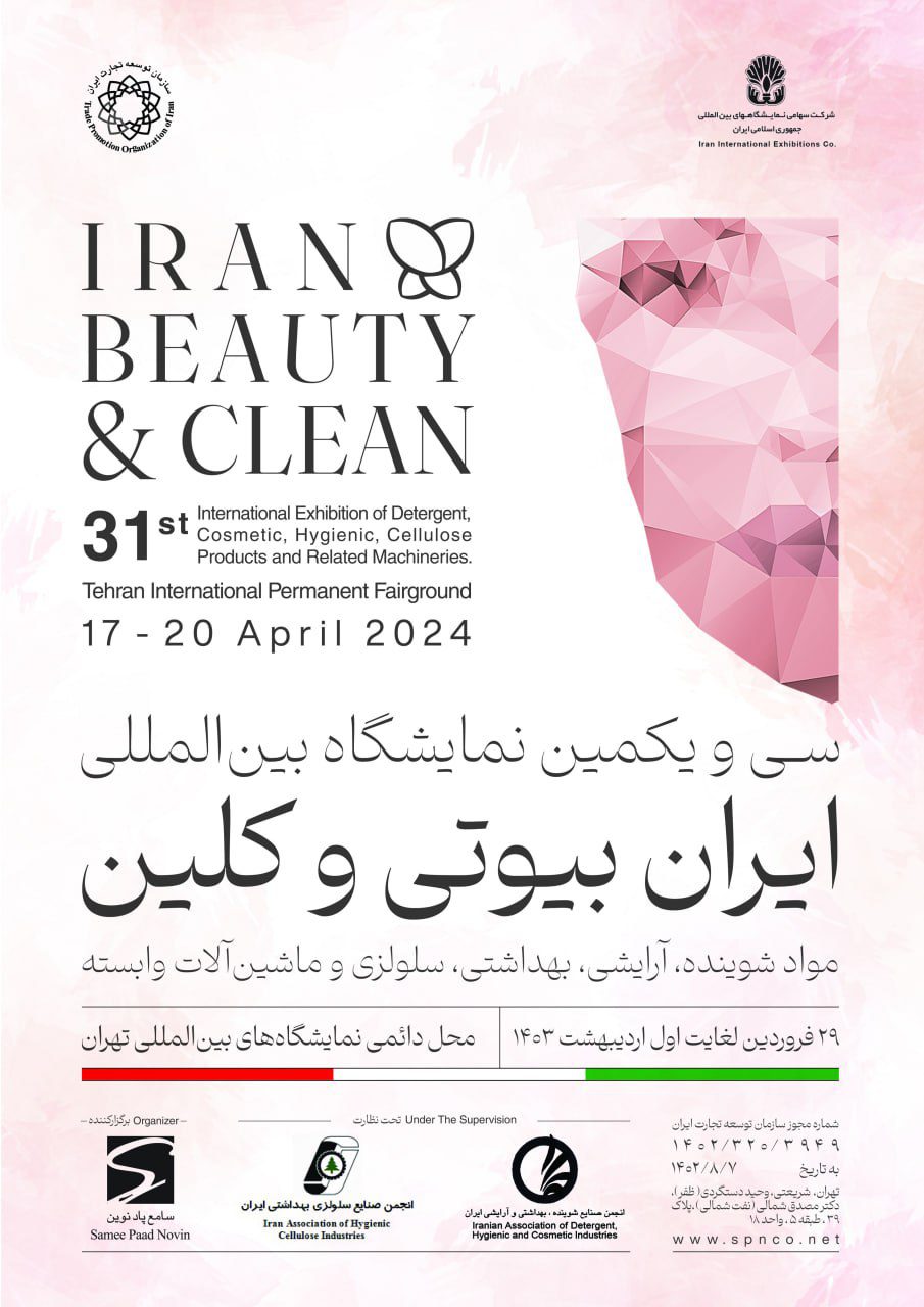 برگزاری سی و یکمین نمایشگاه بین المللی مواد شوینده،آرایشی،بهداشتی،سلولزی و ماشین آلات وابسته در محل دائمی نمایشگاه های بین المللی تهران